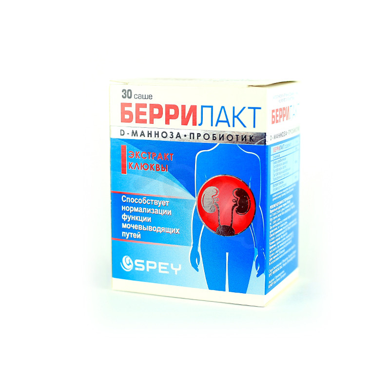 Беррилакт – биологически активная добавка к пище представляет уникальное сочетание пробиотиков, D-маннозы и клюквенного экстракта.