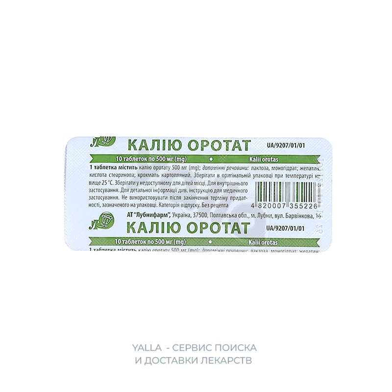 Калия оротат тб 500мг №10