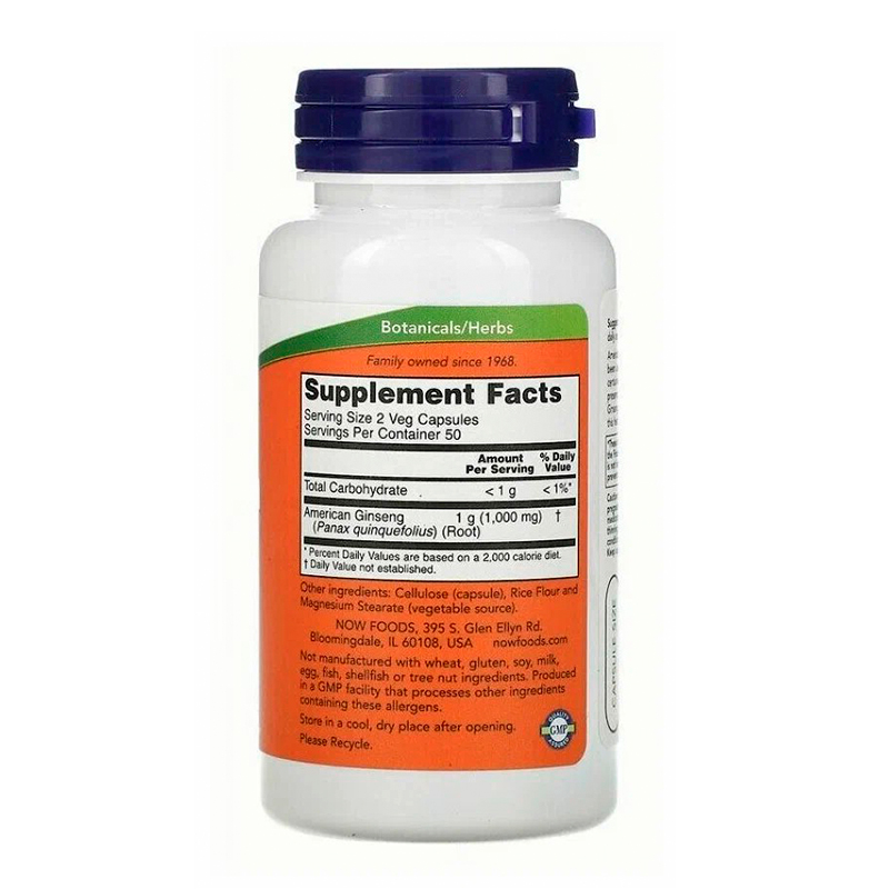 NOW American Ginseng, 500мг, 100шт.