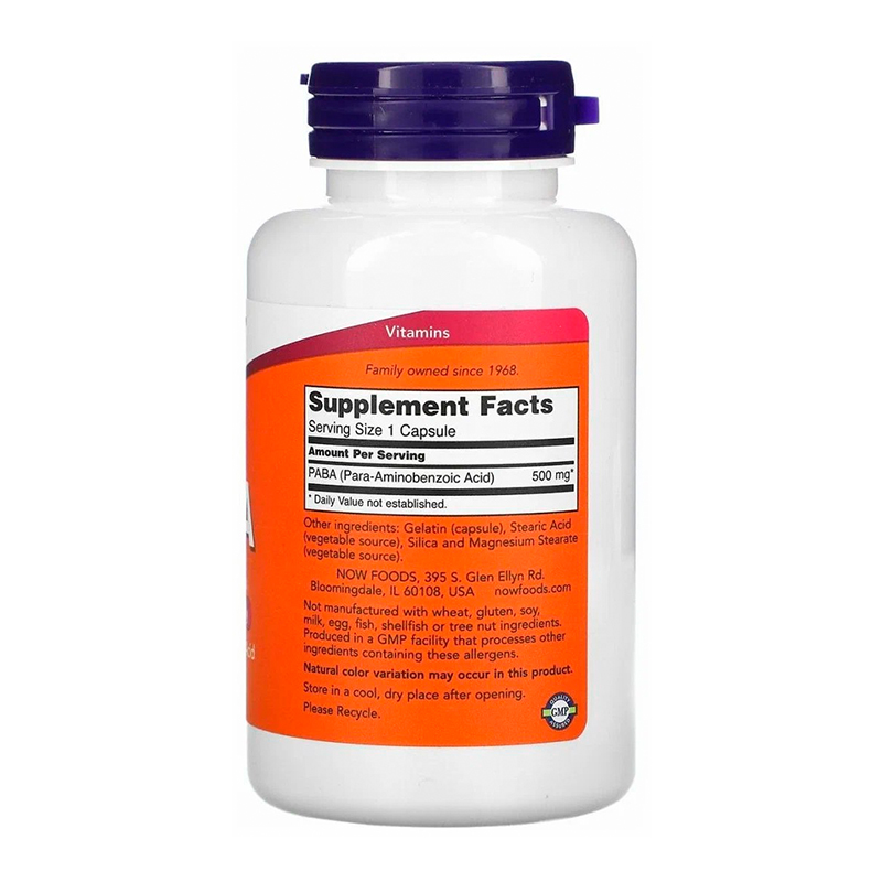 NOW – PABA, 500 мг, 100 шт.