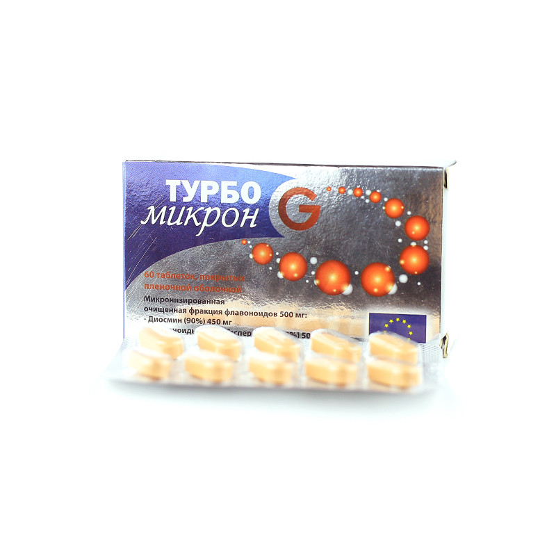 Турбо микрон G является флеботоническим препаратом и вазопротекторным средством (вызывает сужение вен, повышение венозного сопротивления и снижение проницаемости).