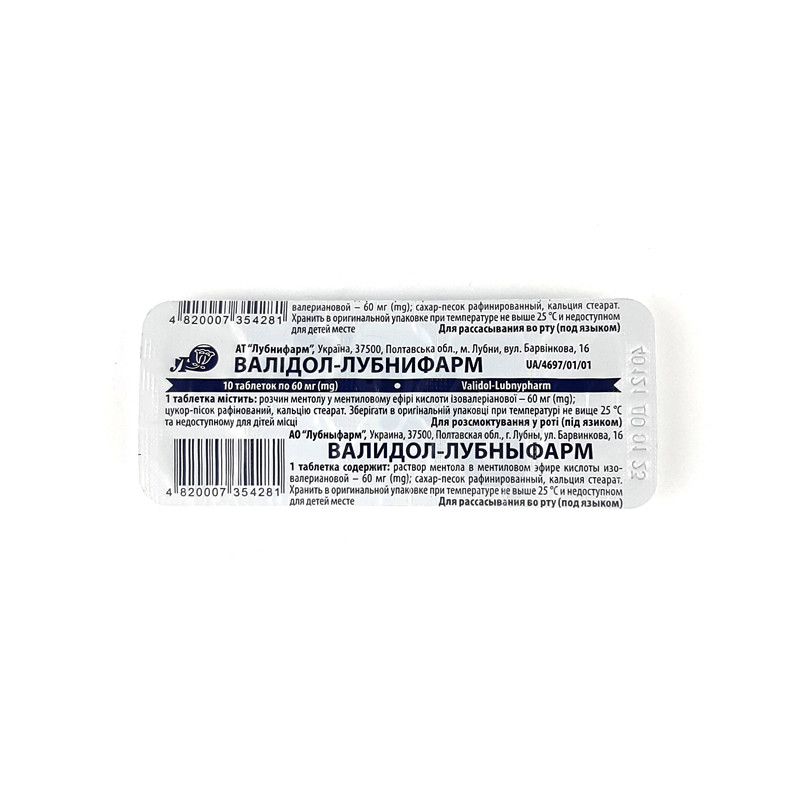 | Действующее вещество (МНН) | Кальция Стеарат , Раствор Ментола В Метиловом Эфире Кислоты Валериановой , Сахар-Песок Рафинированный |